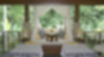 Beautiful decorative features, such as traditionally carved wooden doors and small temples on the lush tropical grounds