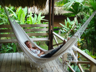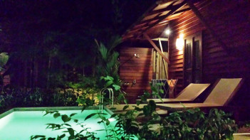 The bungalows have their own terrace and hammock and a small shared swimming pool
