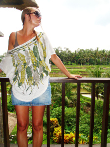 Rooms in modern Balinese design combined with traditional elements, including a balcony with perfect views over the rice fields