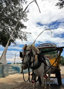 When you get there and you don’t want to stay in the busy main town of the island, you will have to take a Cidomo (Gili T’s famous horse carte taxi) or rent a bike to get around the island, as cars are not allowed here.