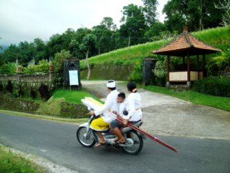 The majority of the Balinese are Hindu, who believe that the Gods are present in all things and every element of nature. They have to bring offerings to the Gods all day to honour them. Therefore you will see lots of temples and colourful Hindu offerings all day everywhere on the island.