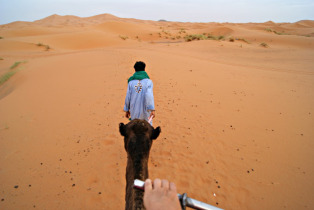 In Merzouga close to the edge of the dunes a number of hotels offer camel trips into the desert. You can also book an overnight stay in a tented camp several kms into the Erg, which makes you feel completely surrounded by nature and huge sand dunes.
