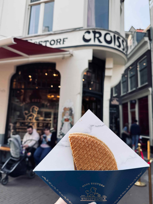 What makes these waffles so special? First of all, they are made from a super tasty batter that is baked very thinly and then cut open in the middle to spread a layer of caramel. If you like, you can then dip the waffle in chocolate and add toppings such as chocolate crumble or fruit. An absolute must-try when in the Netherlands!